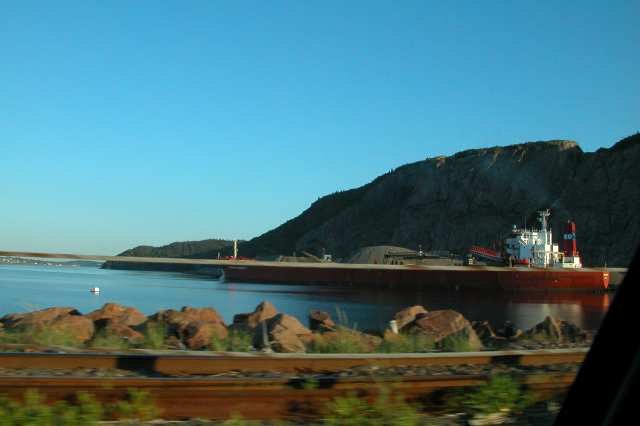 Ship loading Gypsum near Cape Breton causway.