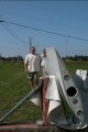 Me beside a single propeller blade and Chris with the farm in the distance