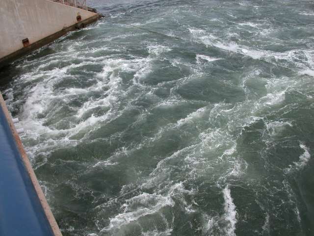 This is the tide rushing *in* to the tidal reservoir at the Anapolis Valley Tidal Generating Project; one of only three in the world it generates enough power for 4000 homes.